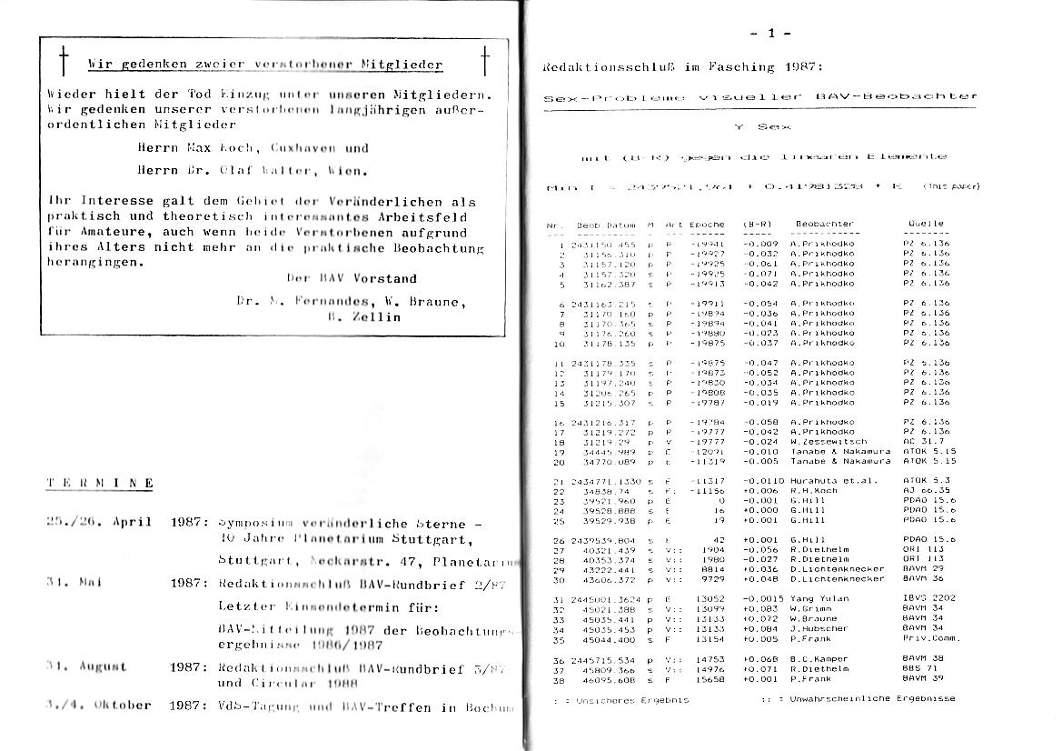 BAV Rundbrief 1/1987 Seite 1