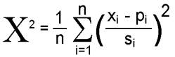 In der hier gegebenen Definition ist: n die Anzahl der Messwerte; die xi sind die Messwerte, die pi die entsprechenden Werte der Fitkurve und si die Messfehler.