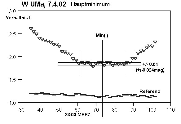 Das System W UMa ist relativ gut bekannt. Es gibt der Klasse der Kontaktsysteme innerhalb der Bedeckungsveränderlichen seinen Namen: Zwei sich berührende, sonnenähnliche Sterne (0.8 bzw.1.14 ? D?) mit gemeinsamer äußerer Gashülle umkreisen sich dreimal am Tag[1]. Eine faszinierende Vorstellung!